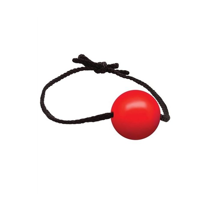 Met deze stoere ballgag snoer jij hem gegarandeerd de mond. Het is een klein model zodat hij perfect is voor de beginners of voor de mannen met een kleine opening. Strik hem achter in de nek goed vast zodat hij gegarandeerd geen woord meer kan uitspreken. Dit doe je met het gevlochten leren touwtje wat aan de gag with leather strap - 40 mm zit bevestigd. Om het plaatje compleet te maken doe jij hem een stoere blinddoek en een stel handboeien om en jij hebt een heerlijk bdsm tafereel om te aanschouwen.