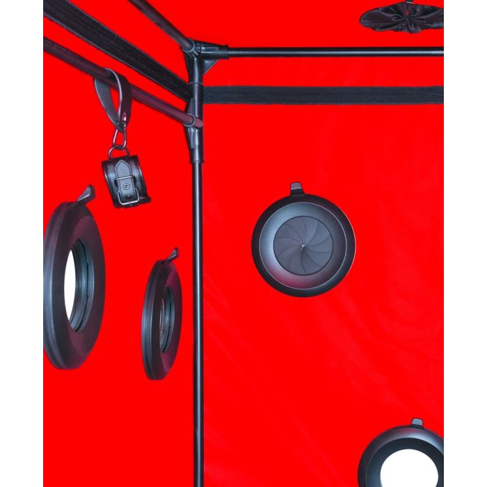 De Scandale BDSM cabine van Secret Dome is speciaal ontworpen voor de fijnproevers van spannende en duistere fantasieën! Deze unieke gesloten cabine biedt een veilige en intieme omgeving voor het verkennen van je verlangens, perfect voor glory hole games en boeiende rollenspellen. Met een stevig buisvormig insteeksysteem en een robuust, ondoorzichtig dekzeil is de cabine in een handomdraai opgezet en klaar voor gebruik. De opening voor het hoofd is voorzien van een handige rits en een brede, verstelbare nekkraag voor optimaal comfort. Met maar liefst 9 grote openingen (3 per kant) die volledig kunnen worden afgesloten met panelen, heb je de volledige controle over je speelruimte. De zijkant is uitgerust met een ritsdeur voor gemakkelijke toegang, terwijl 2 ventilatoren en LED-verlichting zorgen voor een aangename ventilatie en sfeervolle verlichting in de anders volledig donkere cabine. Geniet van extra comfort met de zachte vloermat en maak gebruik van de bijgeleverde handboeien en enkelboeien, die eenvoudig binnenin kunnen worden geplaatst en snel kunnen worden omgedaan en versteld met gespen. Alles wordt geleverd in een praktische opbergtas, zodat je je nieuwe speeltje gemakkelijk kunt meenemen en opbergen. Laat je fantasieën de vrije loop en beleef onvergetelijke momenten met de Scandale BDSM cabine!