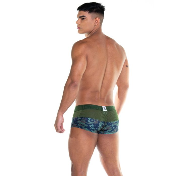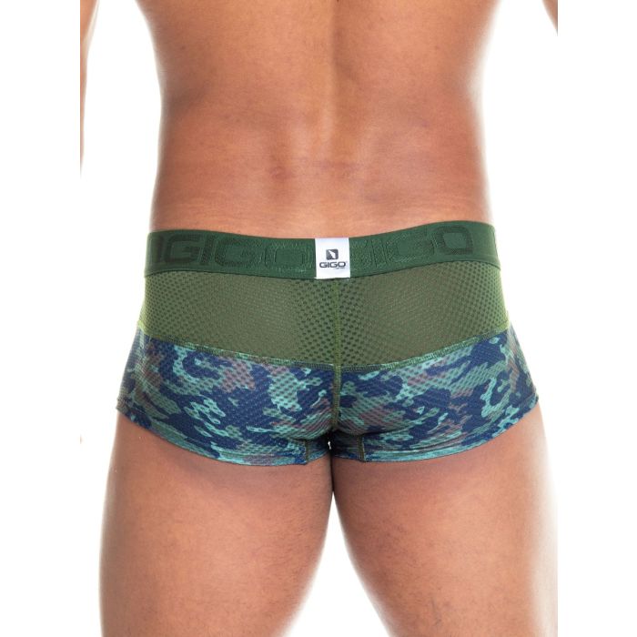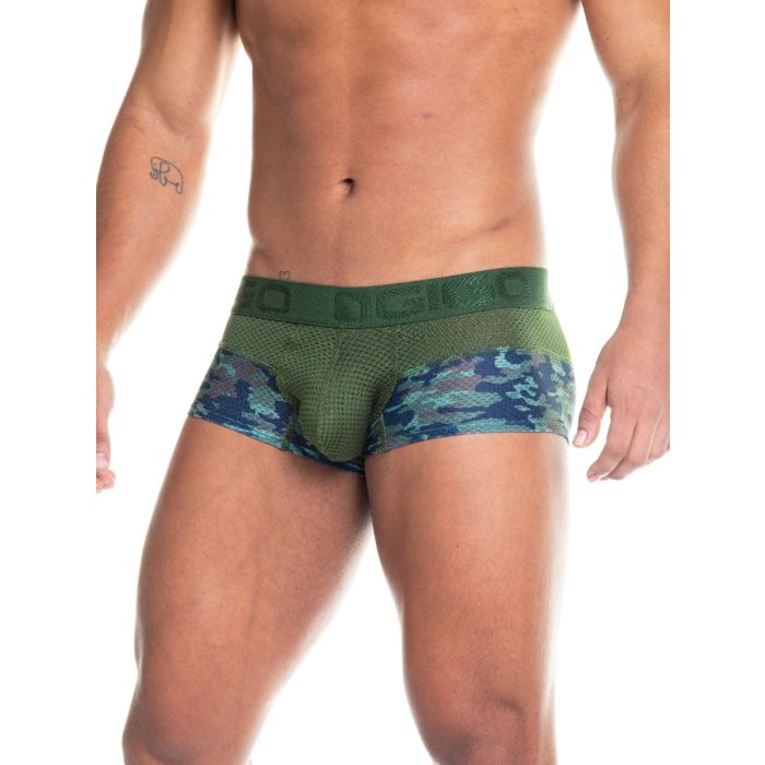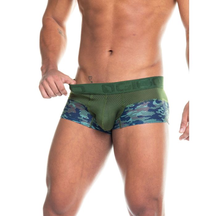 Laat je mannelijke vormen stralen met de GIGO Boxershort Camouflage - Groen en zet je schrap voor een wilde nacht samen met je lover. Deze super stoere boxershort gemaakt van luchtig materiaal zal ervoor zorgen dat al je mannelijke vormen goed worden benadrukt. Daarnaast is het voorvak licht transparant waardoor je altijd klaar bent voor intieme spontaniteit met je lover. De pasvorm is nauwsluitend en de tailleband is elastisch waardoor de slip heerlijk zit.