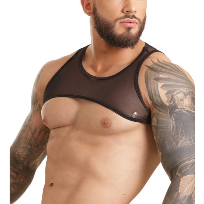 Met een harnas laat jij jouw schouders en rug nog breder en extra gespierd lijken. De GIGO Clandestine Harnas - Zwart geeft een spannend en luchtige uitstraling aan jouw gespierde bovenlichaam. Het harnas is gemaakt van soepele semi transparante stof en draagt zeer comfortabel.