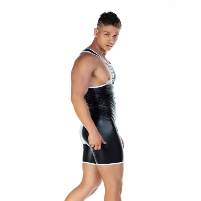 Wanneer je deze singlet draagt zal je partner ontzettend naar je verlangen en zullen jullie zeker weten een spannende avond beleven samen. De singlet is gemaakt van een gladde en glanzende wetlook stof waardoor het een kinky uitstraling krijgt. De pasvorm van de singlet is nauwsluitend en daardoor zijn al je mannelijke vormen goed zichtbaar. Ook heeft de singlet contrasterende witte strepen voor een uitdagende look.