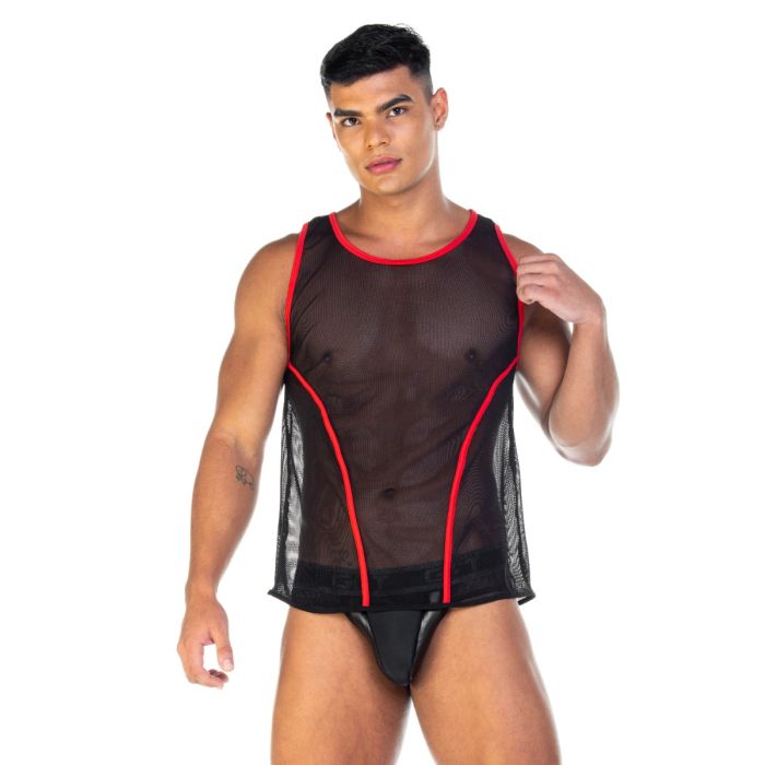 Maak de avond nóg heter en verras je partner met het dragen van de GIGO Fetish Tank Top - Rood. Deze tank top heeft een soepelvallend model en is gemaakt van hoge kwaliteit materialen waardoor de top heerlijk draagt. Ook is het materiaal super luchtig waardoor de tank top maximaal draagcomfort biedt en je al het comfort geeft waarnaar jij op zoek bent. Combineer de tank top eenvoudig met een leuke short of jockstrap voor een geweldige look.