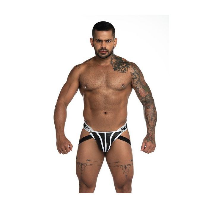 De unieke vormgeving van deze jockstrap biedt optimale ondersteuning en comfort, terwijl de elastische banden aan de zijkanten perfect over je dijen lopen en onder je billen door voor een subtiel liftend effect zorgen. De open achterkant voegt niet alleen gemak toe, maar geeft ook een extra vleugje ondeugendheid aan je look.