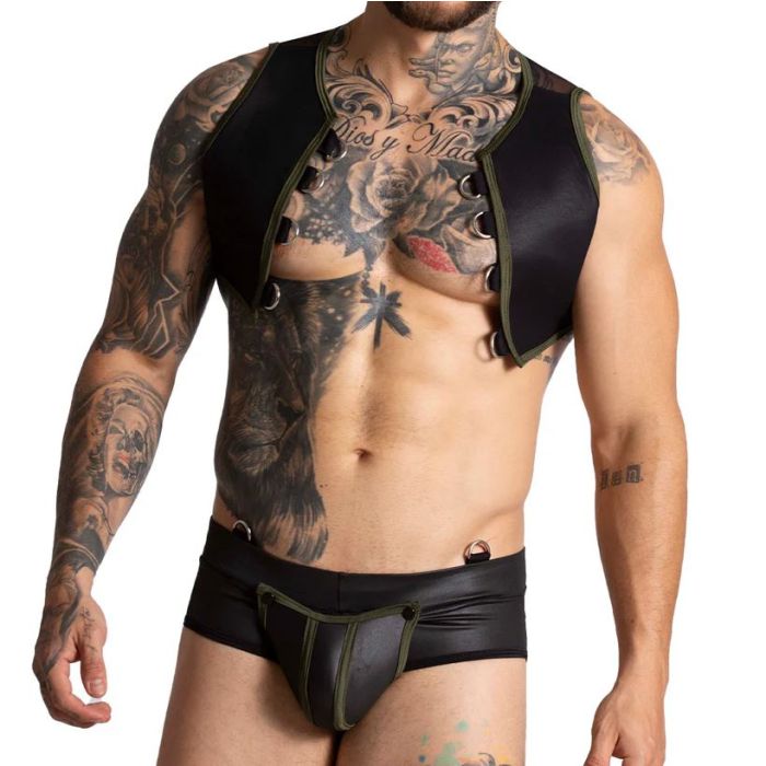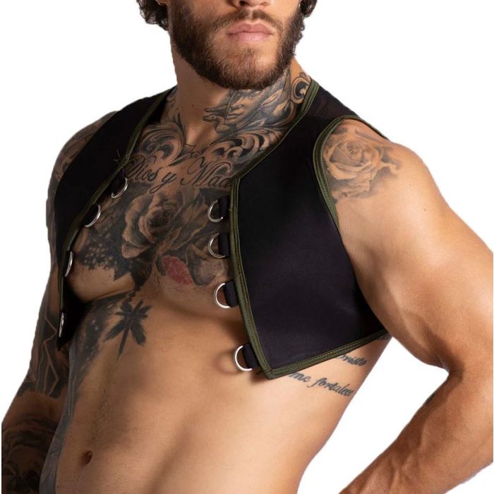 Maak je look compleet met ons GIGO Harnas F Fetish in het opvallende zwart met groene accenten! Dit harnas is niet zomaar een accessoire; het is een statement piece dat je outfit naar een hoger niveau tilt. Gemaakt van faux leer en zwarte tule, biedt het een spannende mix van texturen die zowel edgy als stijlvol is. De accenten en de front ringen voegen een extra dosis flair toe, waardoor je zeker de aandacht trekt waar je ook gaat.