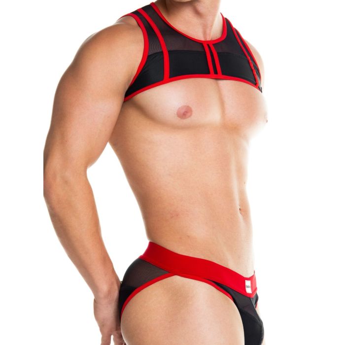 Dankzij dit harnas laat jij jouw mannelijke figuur nog breder en extra gespierd lijken. De Gigo Harnas Skin - Rood geeft een sexy en mysterieuze uitstraling aan jouw gespierde bovenlichaam. Het harnas is gemaakt van soepele zwarte stof met een prachtige rode accenten voor een geweldige look.
