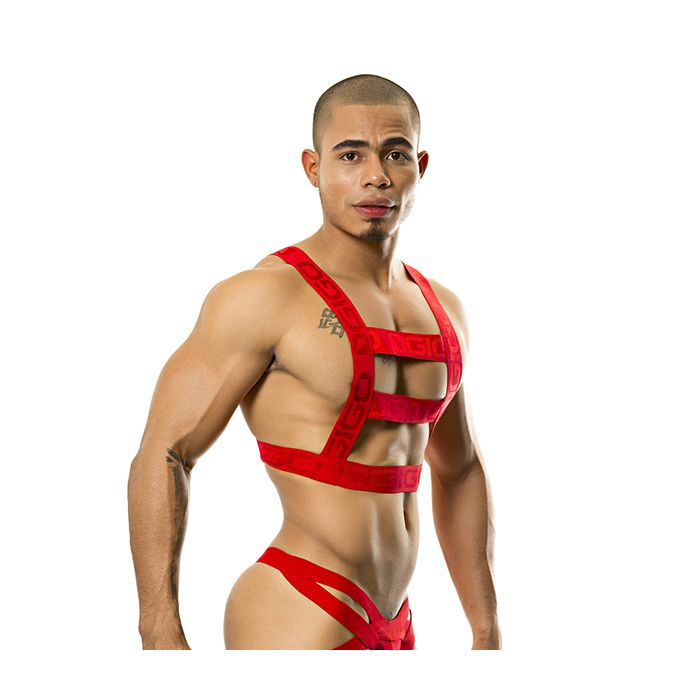 Ga voor een mannelijke look met het GIGO Harness Resistless - Red. Dit harnas laat jouw brede, mannelijke schouders extra sexy uitkomen. Het harnas is gemaakt van stevige, elastische banden waarop het GIGO logo is geborduurd.