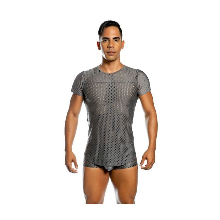 Vindt jij dit shirt futuristisch of juist sportief? Wat je er ook van vindt het GIGO Mesh T-Shirt - Mixture Gray is sowieso super sexy!