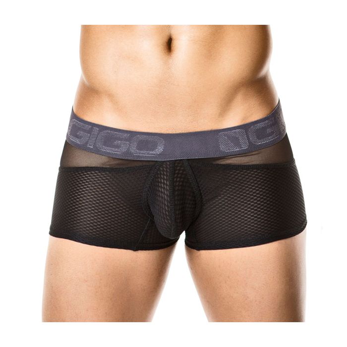 Geef lekker veel van jezelf prijs in de Mesh Trunk - Combi Black van het merk GIGO. Deze strakke en lage boxershort zit als gegoten. De boxer is gemaakt van 2 soorten doorschijnend mesh, voor een uitdagende look.