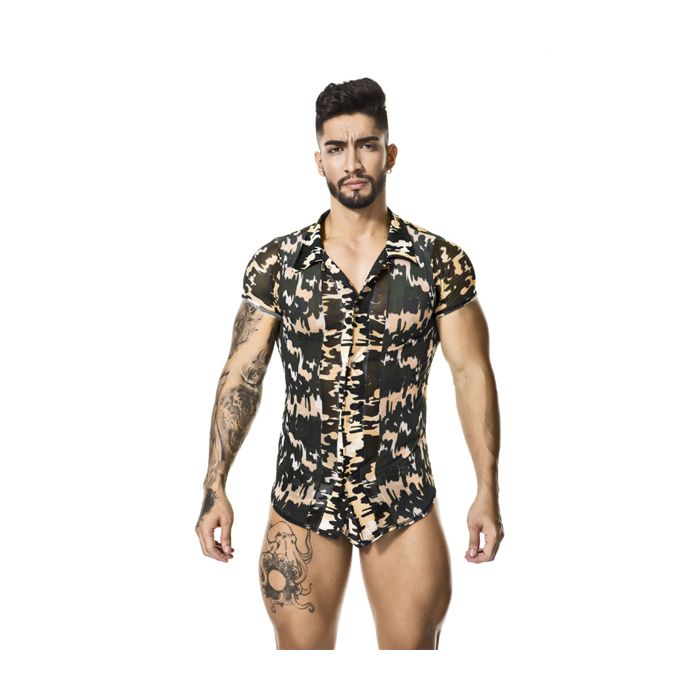 Het Military Shirt met Knopen van het merk GIGO is gemaakt om jouw body in te showen. Het doorschijnende mesh met stoer camouflage patroon zit heerlijk strak rond jouw gespierde torso en door de drukknopen is het shirt gemakkelijk van jouw lijf te rukken. Het kraagje en de korte mouwen geven een stijlvolle look.