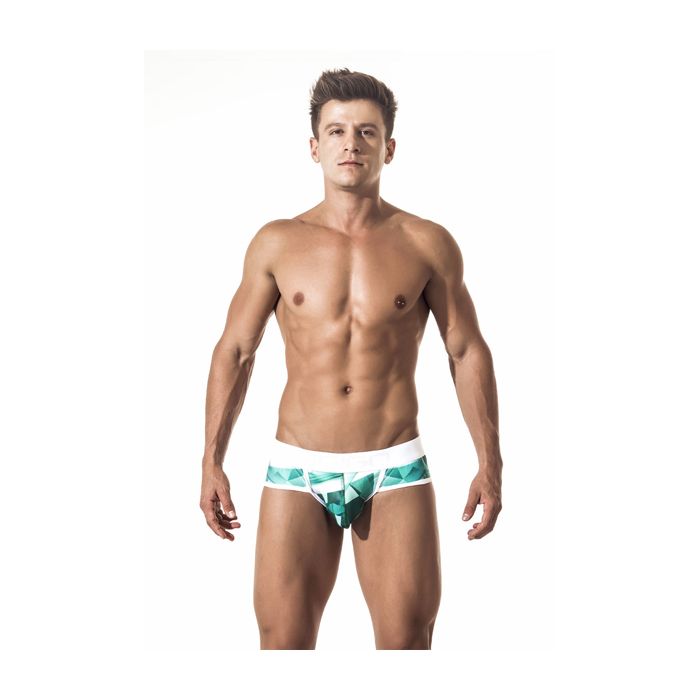 De Sexy Jocktrap - Futuristic van GIGO is een kekke slip met open achterkant. De futuristische print in groen tinten geeft samen met de witte tailleband en zomen een fris uiterlijk. De slip is gemaakt van zachte en soepele materialen die lekker knus zitten.