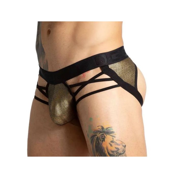 Deze brief jockstrap van het gerenommeerde gay merk GIGO is een must-have voor iedereen die op zoek is naar een combinatie van stijl en comfort. Het ontwerp is voorzien van een opvallende gouden print die niet alleen de aandacht trekt, maar ook een gevoel van luxe en exclusiviteit uitstraalt. De jockstrap is vervaardigd uit hoogwaardige materialen die zorgen voor een perfecte pasvorm en een aangenaam draagcomfort, waardoor het ideaal is voor zowel dagelijks gebruik als speciale gelegenheden.