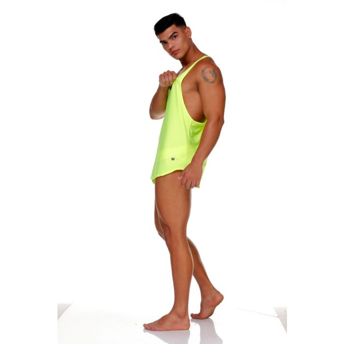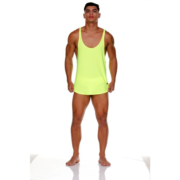 De GIGO Tank Top Arab - Geel is een lekkere losse en luchtige tank top. De tank top heeft een mouwloos model met ruime armopeningen en een sportief model. Hierdoor zijn jouw gespierde armen en schouders goed zichtbaar. Het luchtige materiaal en het ruimvallende model maken het shirt geschikt om in te sporten, maar ook om in te chillen (alleen of samen met je lover). De tank top is ook leuk om casual te dragen. Kortom, met het dragen van de GIGO Tank Top Arab - Geel maak jij van je avond zeker weten een super spannende avond.