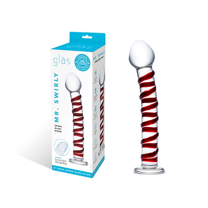 Mr. Swirly is een revolutionair seksspeeltje dat ontworpen is om een ongeëvenaarde ervaring te bieden. Het speeltje heeft een opvallende dikke rode spiraal die zich sierlijk om de doorzichtige glazen schacht wikkelt, die een zachte kromming heeft. Deze spiraal zorgt voor een unieke stimulatie en massage, waardoor het genot aanzienlijk toeneemt. De speciale punt is ontworpen om de G-spot direct te raken, wat zorgt voor een intensere sensatie. Daarnaast is Mr. Swirly breukbestendig en hypoallergeen, wat het veilig en duurzaam maakt voor gebruik. Het onderhoud is eenvoudig, wat bijdraagt aan het gebruiksgemak. Een ander bijzonder aspect is dat het zowel warmte als kou kan vasthouden, wat extra variatie in stimulatie mogelijk maakt. Mr. Swirly is geschikt voor alle soorten glijmiddelen, waardoor het een veelzijdige toevoeging is aan elke slaapkamer.