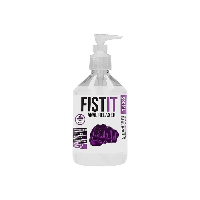 Relax je anus met Glijmiddel Fist It Anal Relaxer met handpomp - 500ml. Dit glijmiddel is op waterbasis en dus zeer geschikt voor gebruik met latex condooms. De ingredienten geven je anus verzorging zodat anal play leuk en comfortabel blijft. Het glijmiddel zit in een handige pomp zodat je goed kan doseren. Het wast makkelijk weer weg waardoor het geen vlekken achter laat en het is neutraal van smaak zodat, wanneer de gemoederen heet worden en er beland wat in je mond dit niet de spannende sfeer zal verpesten.