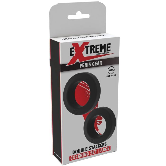 De Hidden Desire Double Stackers Cockringen Set in maat L is de ultieme aanvulling voor je intieme momenten! Deze set bevat twee royale cockringen die je zowel apart als samen kunt dragen, zodat je de controle en het comfort kunt afstemmen op jouw persoonlijke voorkeuren. Gemaakt van superzacht, rekbaar silicone, bieden deze ringen een veilige en comfortabele pasvorm die je niet in de weg zit, zelfs niet tijdens de meest intense momenten. De grotere maat zorgt voor extra ondersteuning en comfort, wat bijdraagt aan een verbeterde erectie en meer controle. Het strakke, eenvoudige ontwerp maakt het gebruik en schoonmaken een fluitje van een cent, perfect voor iedereen die een grotere pasvorm verkiest. Verhoog je plezier en ervaar de voordelen van deze veelzijdige cockringen – je intieme leven zal nooit meer hetzelfde zijn!