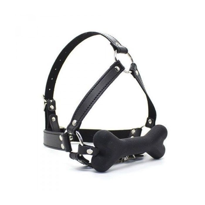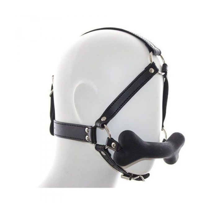 Hoofdharnass met Bone Gag - Zwart