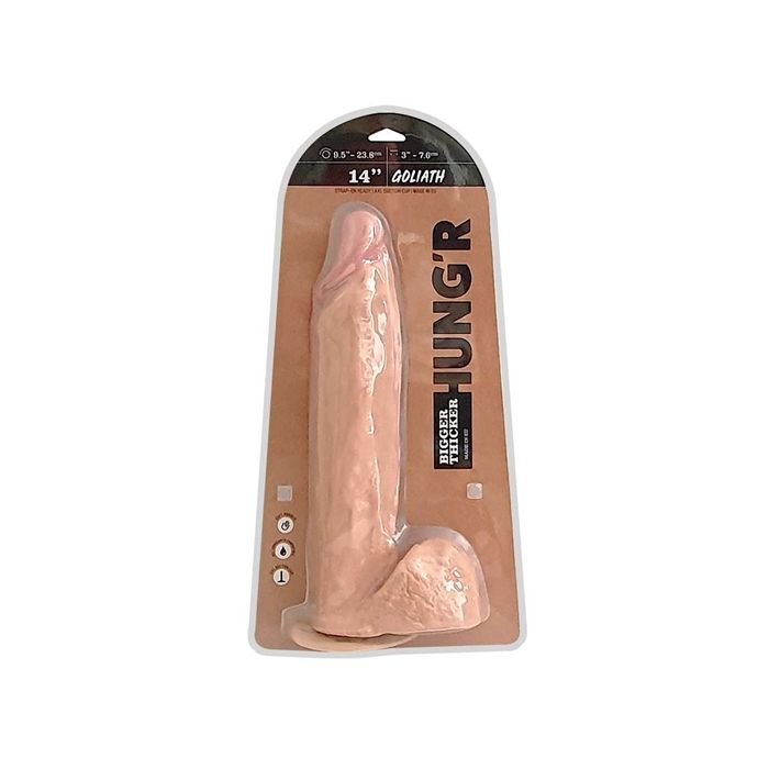 De HUNG'R Goliath is de ultieme keuze voor de ervaren gebruiker die op zoek is naar een krachtige en plezierige ervaring. Met een indrukwekkende lengte van 36 cm en een diameter van 7,60 cm biedt deze dildo een sensatie die je niet snel zult vergeten. Gemaakt van zacht PVC, voelt de Goliath comfortabel aan en is hij eenvoudig te reinigen. De stevige zuignap aan de basis maakt het mogelijk om de dildo veilig op een vlakke ondergrond te bevestigen, zodat je je volledig kunt concentreren op je genot zonder je zorgen te maken over stabiliteit. Dit maakt de Goliath ideaal voor gebruik in verschillende omgevingen, of je nu alleen bent of samen met een partner.