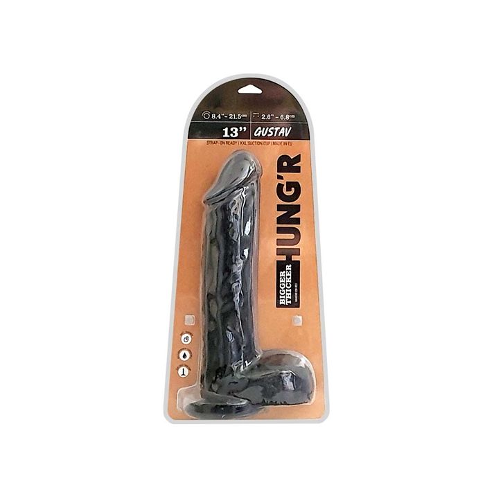 De HUNG'R Gustav is een indrukwekkende dildo die speciaal is ontworpen voor de veeleisende gebruiker. Met een lengte van 33 cm en een diameter van 6,8 cm biedt deze dildo een realistische ervaring die je niet snel zult vergeten. Het zachte PVC-materiaal voelt aangenaam aan op de huid en zorgt voor een comfortabele en plezierige ervaring. De gedetailleerde afwerking, waaronder de grote balzak en de geaderde schacht, draagt bij aan de authentieke uitstraling en het gevoel van de Gustav. Dit product is perfect voor zowel solo gebruik als voor gebruik met een partner, waardoor het een veelzijdige aanvulling is op je collectie.