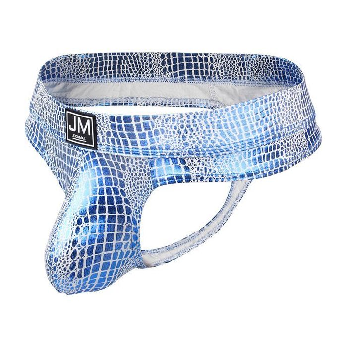 De Spectrum String - Blauw is een extravagante string uit de collectie van Jockmail. De string is gemaakt van gladde stof dat koel en lederachtig aanvoelt. De string heeft een opvallende print van krokodillen leer, uitgevoerd in een metallic blauwe kleur en wit.