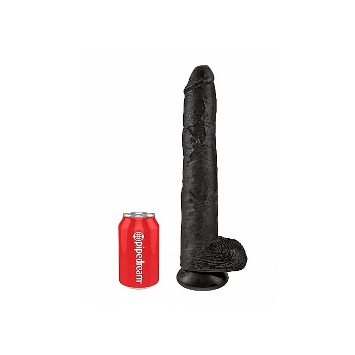 Zwarte Dildo met Ballen en Zuignap - 36 cm