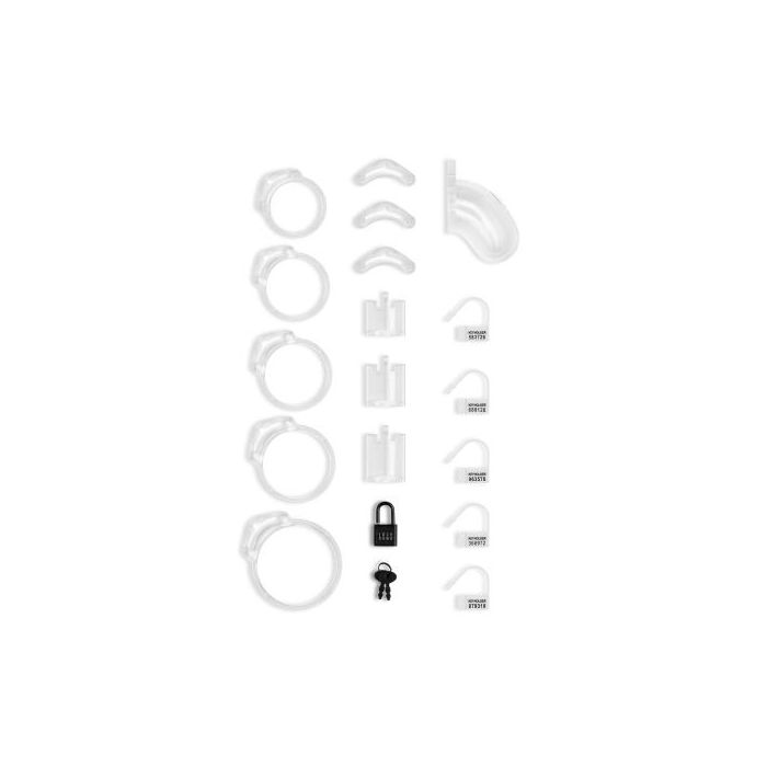 Met vijf ringen in verschillende maten (4,5 - 6,5 cm) vind je altijd de perfecte pasvorm voor een comfortabele en veilige ervaring. De set wordt geleverd met een stevig metalen hangslot en twee sleutels, zodat je de controle volledig in handen hebt. Voor extra gemoedsrust zijn er ook vijf plastic genummerde hangsloten inbegrepen. Deze kunnen eenvoudig met een schaar worden verwijderd na gebruik, maar de unieke nummers zorgen ervoor dat de drager de chastity cage niet stiekem kan verwijderen of vervangen zonder betrapt te worden.