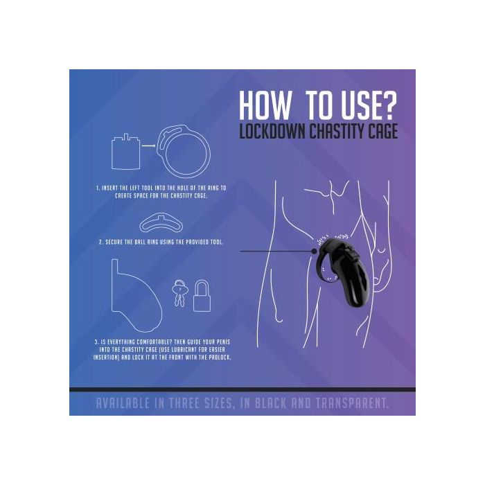 Ben je klaar om je grenzen te verleggen en een nieuwe dimensie van plezier te ontdekken? De Lockdown chastity cage is jouw ticket naar een spannende bondage-ervaring die je niet snel zult vergeten. Deze chastity cage is ontworpen om de drager te weerhouden van een erectie, wat zorgt voor een intense controle en spanning. Het doorzichtige ontwerp biedt niet alleen een visueel spektakel, maar stelt je ook in staat om de drager in de gaten te houden, waardoor de opwinding alleen maar toeneemt. Perfect voor langdurig gebruik, deze cage laat je genieten van dagenlange voorpret, terwijl de slimme opening aan de voorkant het mogelijk maakt om eenvoudig te urineren zonder de kooi te hoeven verwijderen.