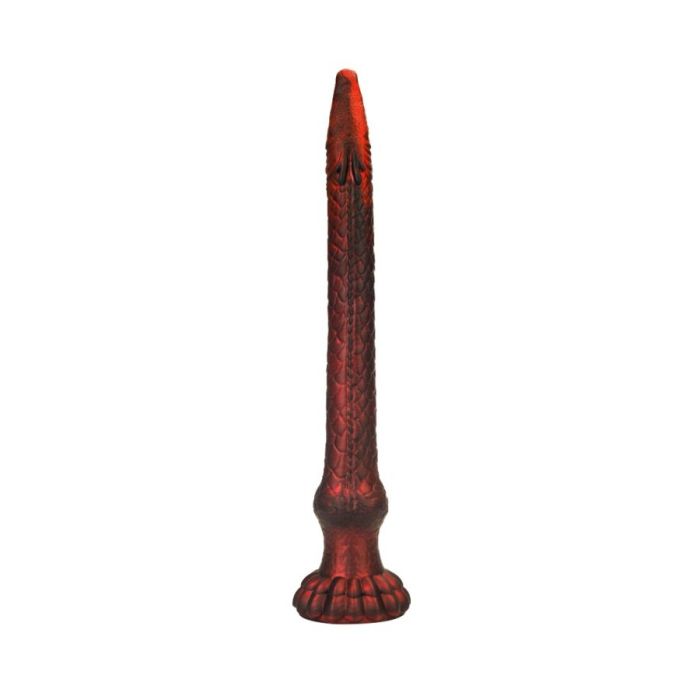 De Lange Monster Dildo Heelix L is een must-have voor elke avontuurlijke verzamelaar! Met een heerlijke inbrenglengte van 52 cm en een variërende breedte van 2 tot 7,5 cm, biedt deze dildo een ongeëvenaarde sensatie die je zintuigen zal prikkelen. Het unieke ontwerp, geïnspireerd op de krachtige contouren van een draak, zorgt niet alleen voor een visueel spektakel, maar het getextureerde oppervlak met schubben biedt ook een extra dimensie aan je ervaring. Dankzij de stevige zuignap aan de andere kant kun je deze dildo eenvoudig op een gladde ondergrond bevestigen voor handsfree plezier. Laat je fantasie de vrije loop en verken nieuwe hoogtes van genot, of je nu je grenzen wilt verleggen of gewoon op zoek bent naar een spannende uitdaging. De Lange Monster Dildo Heelix L is de perfecte metgezel voor diegenen die durven te experimenteren!