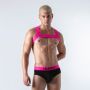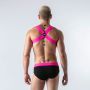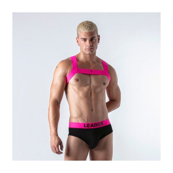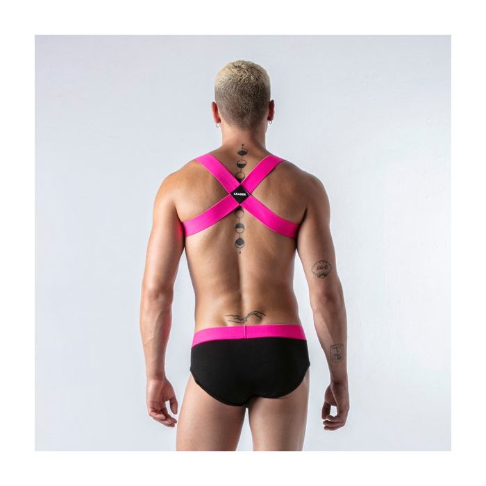 Het Leader City Nights Harnas - Roze heeft een basic model maar is obsoluut niet te min voor een feestje. Het harnas is gemaakt van zachte rekbare banden met een H-vorm voor en een X-vorm op de rug. Dit model laat jouw gespierde schouders perfect uit de verf komen.