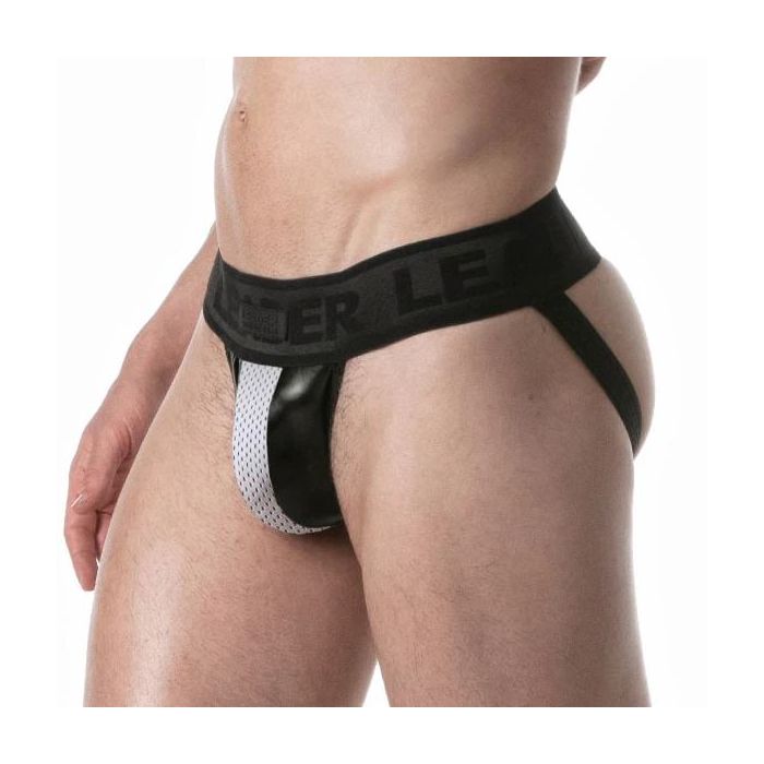 Wat deze jockstrap echt onderscheidt, zijn de innovatieve elastische leren en sportieve mesh panelen in het kruis. Deze gedurfde combinatie zorgt niet alleen voor een opvallende uitstraling, maar biedt ook uitstekende ventilatie, zodat je je fris en comfortabel blijft voelen, ongeacht de omstandigheden.