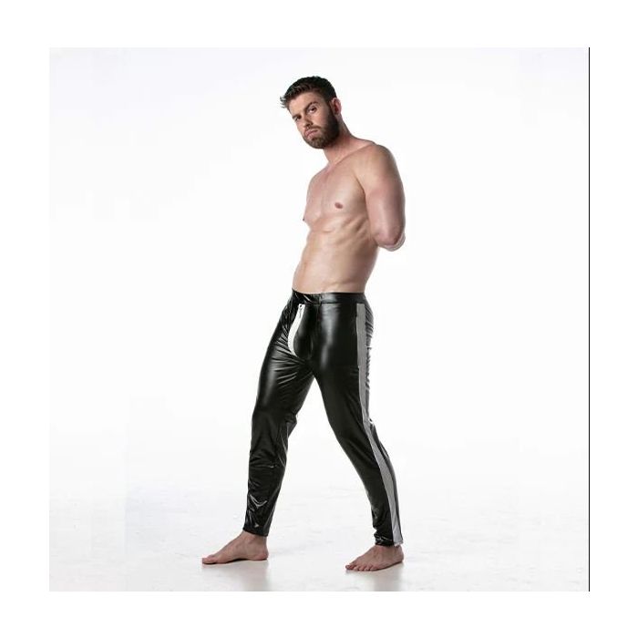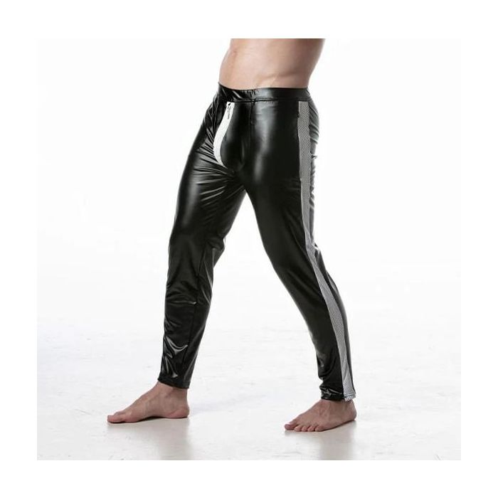 Deze stretchy leren broek is gemaakt van een lederachtige stof die zorgt voor een nauwsluitende pasvorm met een sterke fetisj uitstraling. De broek is gemaakt van een elastische stof die zorgt voor een comfortabele en slanke pasvorm. De broek heeft een sportief mesh paneel detail dat niet alleen zorgt voor een trendy uitstraling, maar ook voor extra ventilatie tijdens het dragen. De dubbele ritssluiting met tweewegsopening zorgt voor gemakkelijke toegang en maakt het aan- en uittrekken van de broek eenvoudig. Daarnaast is er een discrete siliconen LEADER merklabel op het linker dijbeen geplaatst, wat een subtiele toevoeging is aan het ontwerp. Deze broek is perfect voor diegenen die op zoek zijn naar een opvallende en comfortabele broek met een fetisj uitstraling.