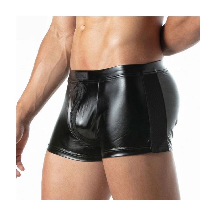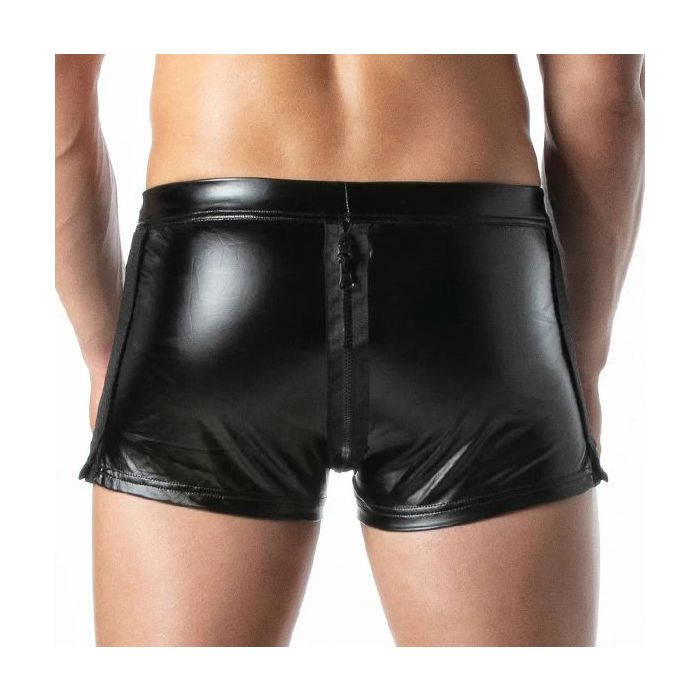 Deze stretchy lederlook shorts zijn perfect voor feestjes en hebben een sterke fetisj uitstraling. De shorts zijn gemaakt van een elastische leatherette stof die zorgt voor een comfortabele en nauwsluitende pasvorm. De sportieve mesh panelen zorgen voor extra ventilatie en een trendy uitstraling. De shorts zijn voorzien van dubbele ritssluitingen met tweewegsopening, waardoor ze gemakkelijk toegankelijk zijn. Dit maakt het aan- en uittrekken van de shorts eenvoudig en snel. Op de tailleband van de shorts is een discrete silicone LEADER merklabel aangebracht, wat zorgt voor een subtiele en stijlvolle branding. Deze shorts zijn ideaal voor mensen die op zoek zijn naar een opvallende en comfortabele outfit voor feestjes of andere gelegenheden.
