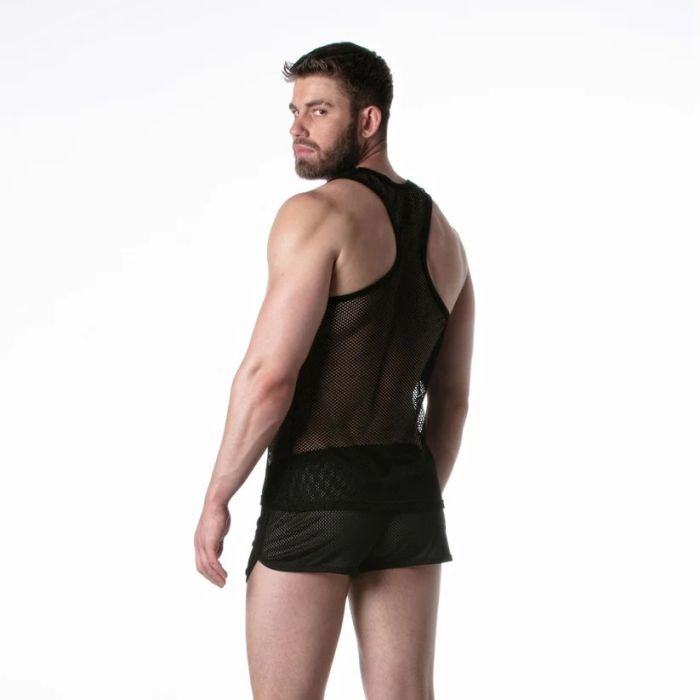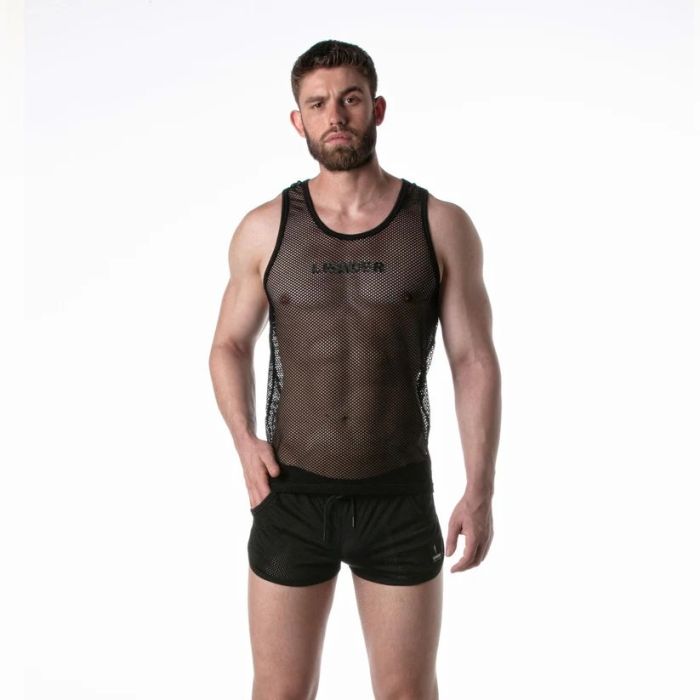 Ga voor sportief met de Leader Mesh Tank Top - Zwart. Voor een stoere look is dit de perfecte tank top voor de sportieve man. De tank top is gemaakt van fijn mesh waardoor deze licht doorschijnend is en dus perfect zal ademen tijdens hete avonden of het lange dansen in de club. Kortom, maak je avond nóg leuker met het dragen van de Leader Mesh Tank Top - Zwart.