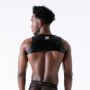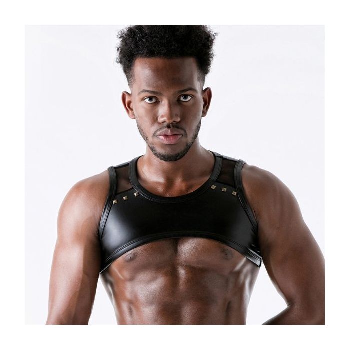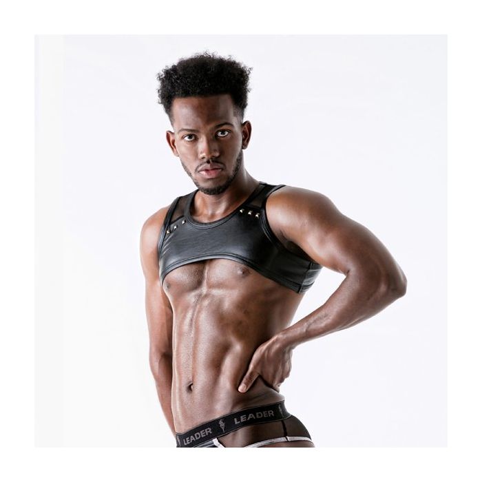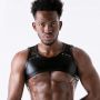 Het strakke Leader Sinner Harnas - Wit van Leader Menswear is een super sexy kledingstuk. Dit harnas is gemaakt van stretch PVC voor een spannende leder look. Het snug fit design zorgt ervoor dat jouw schouders en borstspieren er extra lekker uit zien. Op de schouders zijn inzetten van doorzichtig mesh aangebracht met een rand van piramide studs. Op de acherkant is een embleem van rubber aangebracht met witte opdruk.