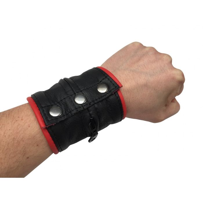 Voor een spannend feestje waarbij jij bijna niks aan zal hebben is deze Leather Bracelet Wallet Red de perfecte uitkomst voor jou. Hij heeft een speels rood biesje om de look compleet te maken. Hij is gemaakt van soepel leer welke alleen maar zachter zal worden tijdens het dragen. Aan de binnenkant heeft de armband een geïntegreerde portefeuille zodat jij toch het nodige mee kan nemen naar jouw spannende feestje. De armband sluit met 3 drukknoopjes.