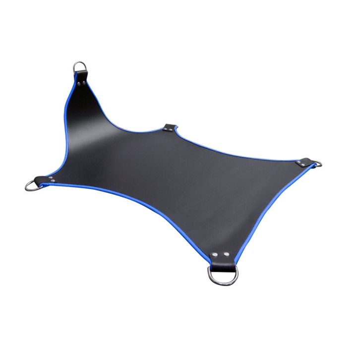 De lederen Sling met blauwe bies brengt jouw fantasie meer naar de realiteit! Je hoeft niet meer diezelfde houding aan te nemen die je nu wel een keertje kent. Hang de sling aan kettingen, neem jouw gewenste positie aan en ervaar een nieuwe dimensie van seks! Ook zo flauw van altijd maar weer datzelfde standje? Creëer nieuwe mogelijkheden met deze leren sling!Highlights Leren Sling met blauwe bies