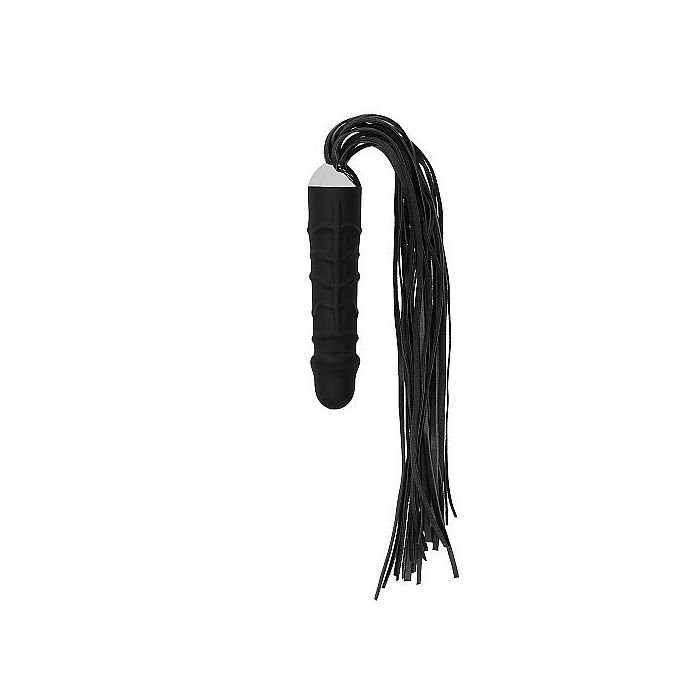 De OUCH! dildo-zweepcollectie is speciaal ontwikkeld voor vaginale- en anale stimulatie en penetratie. De 30 cm lange Leren Zweep Zwart met Dildo Handvat is gemaakt van gebonden leer. Het dildo-uiteinde van deze toy is lekker zacht vanwege het siliconen materiaal, ook heeft hij een heerlijke penisvorm met een grote eikel en dikke, aders over de gehele schacht. Een zeer veelzijdige toy dus. Laat jouw sub merken wie de baas is, met deze indrukwekkende falluszweep gaat dat je zeker lukken.