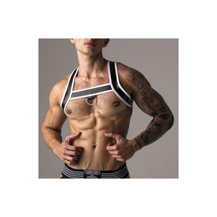 Het Locker Gear Harder Harness - Wit is een leder look harnas die jouw schouders nog breder doet lijken. Het harnas bestaat uit brede banden die nauwsluitend om de schouders zitten. Aan de voorkant is een metalen ring bevestigd.