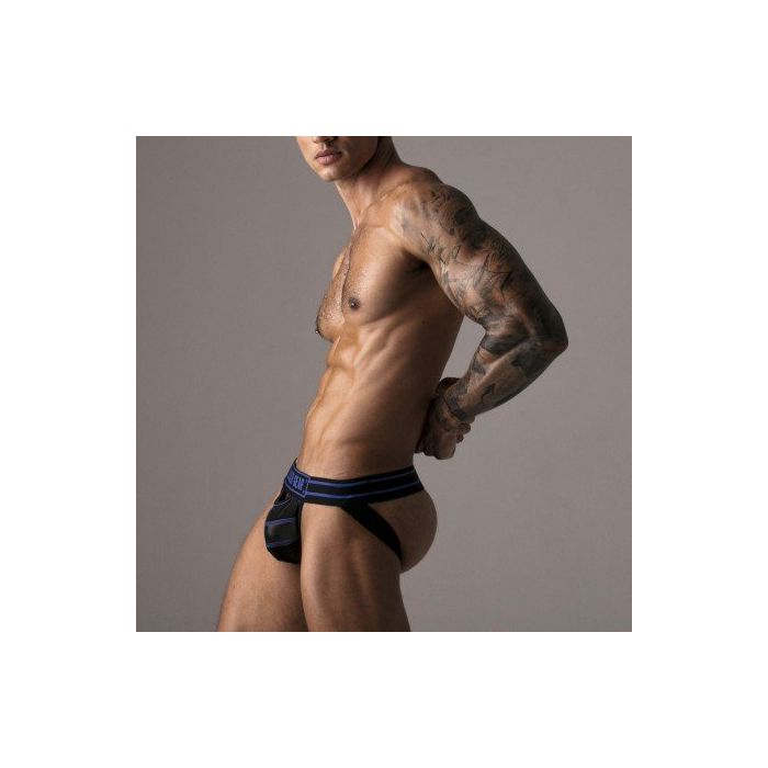 Met kunstleren details en contrasterende stiksels krijgt deze jockstrap een stoere, edgy uitstraling die perfect is voor zowel sportieve als casual gelegenheden. De brede banden onder de billen accentueren je rondingen op een flatterende manier, waardoor je er niet alleen goed uitziet, maar je ook zelfverzekerd voelt.