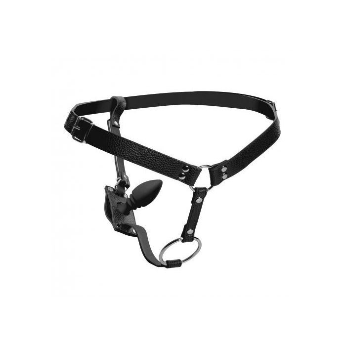 Ga voor een wilde rit met dit stevige harnas. Dit harnas is voorzien van een metalen cockring die ervoor zorgt dat jouw penis in een keiharde toestand zal raken en dat het je ejaculatie zal uitstellen. Tevens is dit harnas voorzien van een siliconen plug die voor een geweldige vulling in je anus zal zorgen. Wanneer jij dit overheerlijke harnas in en om en aan hebt is het tijd voor een wilde rit op je schatje. Neem hem lekker van achteren terwijl jij van voor en van achteren heerlijk wordt verwend. Het harnas is verstelbaar voor de perfecte pasvorm.