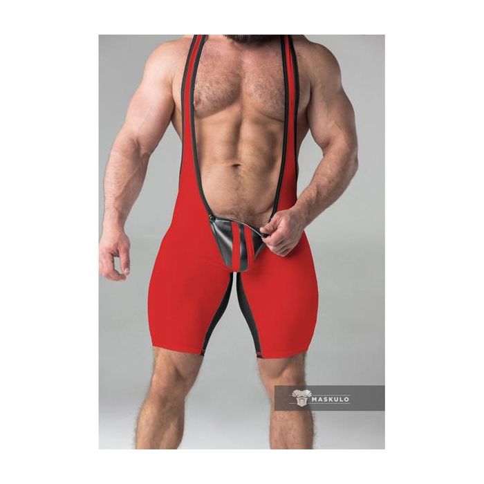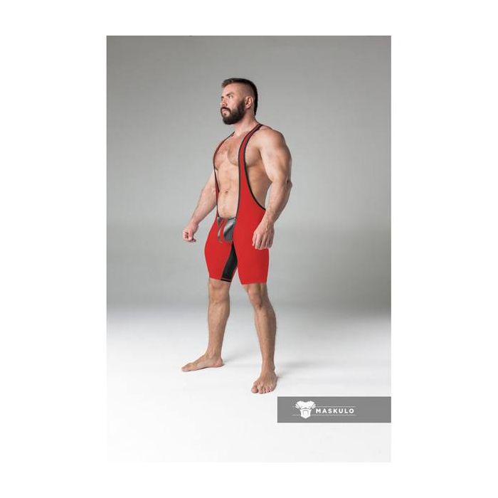 Maskulo Armored Fetish Wrestling Singlet Open Rear - Red