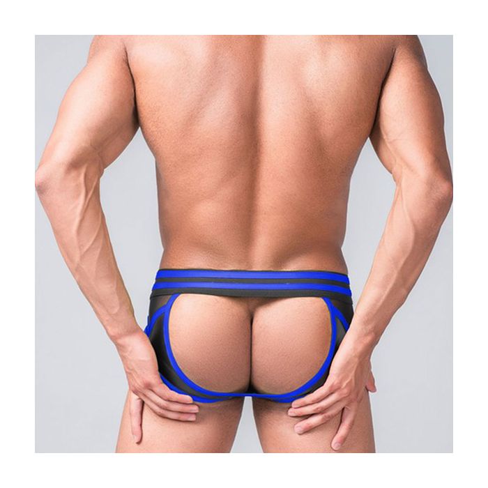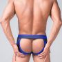 Laat jouw billen er extra verukkelijk uitzien in de Youngero Generation Y Briefs - Blauw van Maskulo. Deze slip heeft door zijn open achterkant een uitdagend model. De slip zit laag en strak. De afneembare buidel is gemaakt van gevoerd spandex met lederlook. In de zijkanten zijn delen van mesh ingezet voor een extra ruige look.Eigenschappen Youngero Generation Y Briefs: