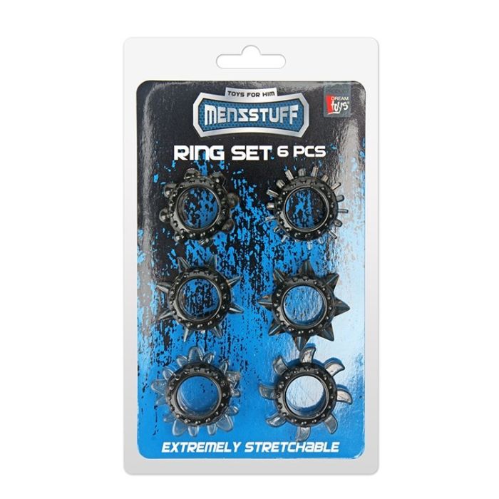 Deze set bestaat uit 6 rekbare cockringen die om iedere pik passen! Elke cockring beschikt over een eigen structuur waarmee je heerlijk kunt experimenteren. Geniet van een keiharde erectie wanneer je één van de cockringen om je pik draagt. Bestel vandaag nog deze heerlijke cockringen voor tegen een zeer bescheiden prijsje!- Set van 6 cockringen