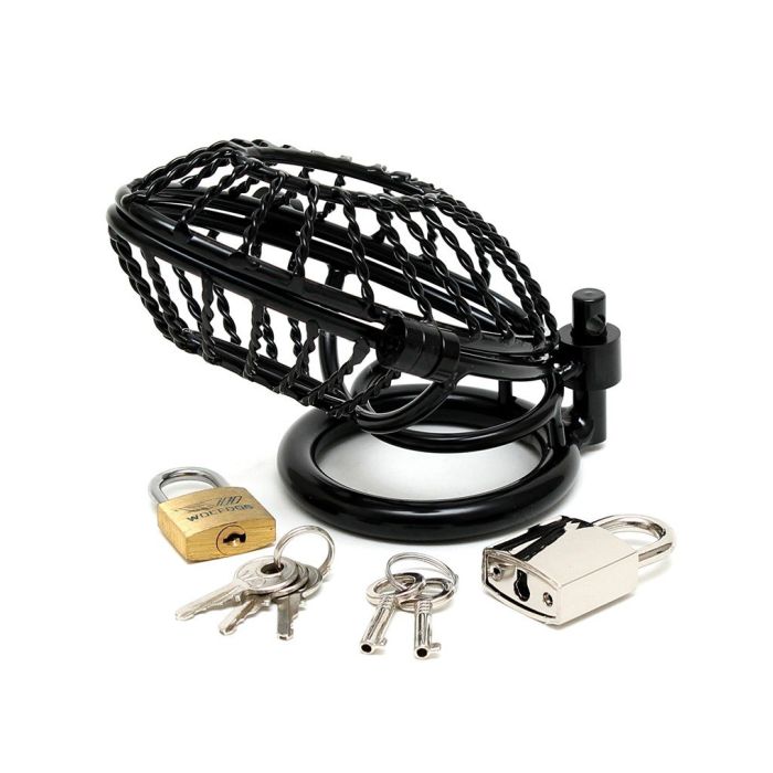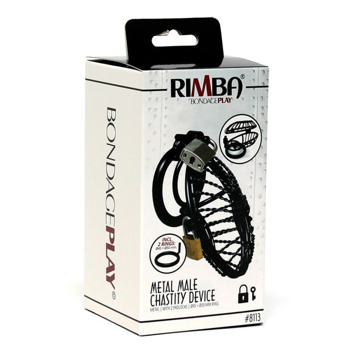 Zet je vriendje op non actief met deze metalen kuisheidsgordel met hangslot van het geweldige merk rimba. De kuisheidsgordel zorgt ervoor dat jij meester bent over zijn penis en dat jij kan bepalen of je vriendje wel of niet een erectie kan krijgen of een orgasme. Het materiaal heeft een gedraaid metalen karakter en heeft aan de boven en onderkant een groot gat zitten. Meegeleverd zijn twee maten ringen en twee hangslotjes om je partner goed op te sluiten.