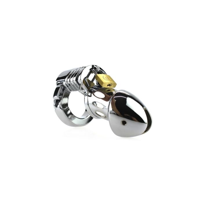 De Metalen Peniskooi Modula is een stijlvolle en robuuste kuisheidskooi in een elegante zilveren afwerking, perfect voor de avontuurlijke geest die op zoek is naar een unieke en spannende ervaring. Gemaakt van hoogwaardig metaal, biedt deze kooi niet alleen een slimme en effectieve manier om de penis op te sluiten, maar zorgt ook voor een aanzienlijke beperking van de kans op een erectie. Met een lengte van 9 cm en een binnendiameter van 3,5 cm is de Modula ontworpen voor een comfortabele pasvorm, terwijl de stevige bevestigingsring met een diameter van 4,5 cm extra veiligheid en stabiliteit garandeert. Of je nu een beginner bent of een ervaren gebruiker, deze kuisheidskooi opent de deur naar nieuwe mogelijkheden in je intieme leven. Durf jij de uitdaging aan te gaan en je grenzen te verleggen?