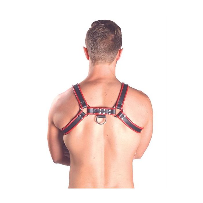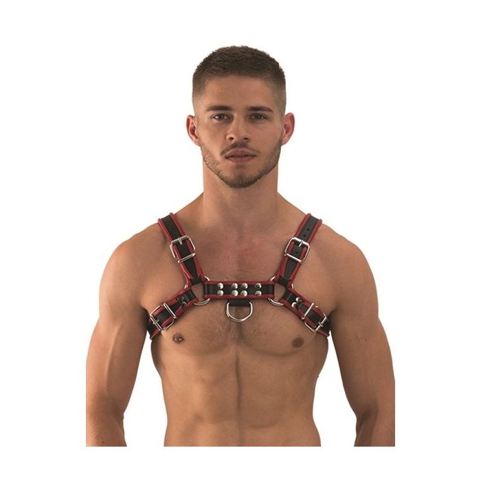 Het hoogwaardige harnas van Mister B is een must-have voor iedereen die stijl en kwaliteit waardeert. Dit stoere harnas, vervaardigd uit 100% echt zadelleer, biedt niet alleen een robuuste uitstraling, maar ook een ongeëvenaarde duurzaamheid. De opvallende rode accentkleuren en de zorgvuldig aangebrachte studs geven het harnas een unieke flair, waardoor het perfect is voor zowel casual als meer formele gelegenheden. De O-ring voegt een extra dimensie toe aan het ontwerp, waardoor het harnas veelzijdig inzetbaar is voor verschillende activiteiten.