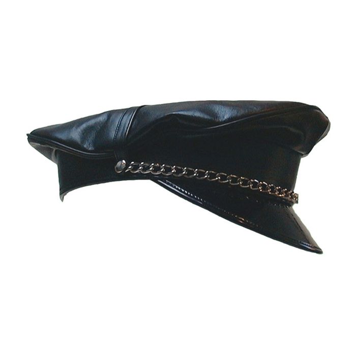 De Mister B Military Cap No Fishbone Zwart is gemaakt van leer en heeft een ketting aan de voorkant boven de klep. Deze pet is ook te leveren met een zilveren rand aan de klep. Verkrijgbaar in de maten hoofdomtrek 54 - 61 cm.