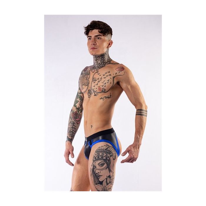 De Neopreen Jock Brief Blauw van het merk Mister B heeft een gladde, nauwsluitende pasvorm. Deze prachtige neopreen jockslip is gemaakt van een van de meest populaire fetisjmaterialen die er zijn. Het combineert de beste eigenschappen van leer en rubber. Het is glanzend, strak, rekbaar en licht. In deze jockslip zie jij er er mannelijk, zelfverzekerd en sterk uit.