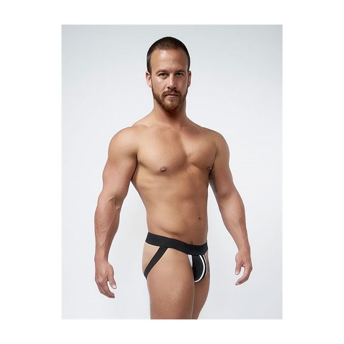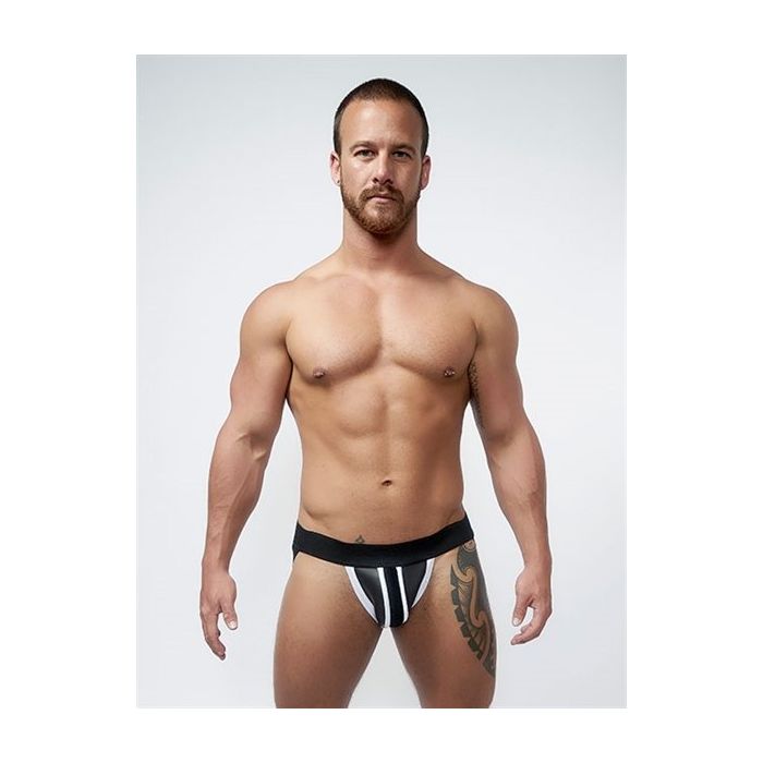 Comfort staat voorop met de brede banden rondom de billen, die een subtiele lift geven voor een voller effect. De stevige band om de heupen zorgt ervoor dat de jockstrap heerlijk zit en je vrij laat bewegen, zonder in te boeten op stijl. Gemaakt van neopreen, een duurzaam en dik synthetisch rubber, voelt deze jockstrap geweldig aan op de huid.