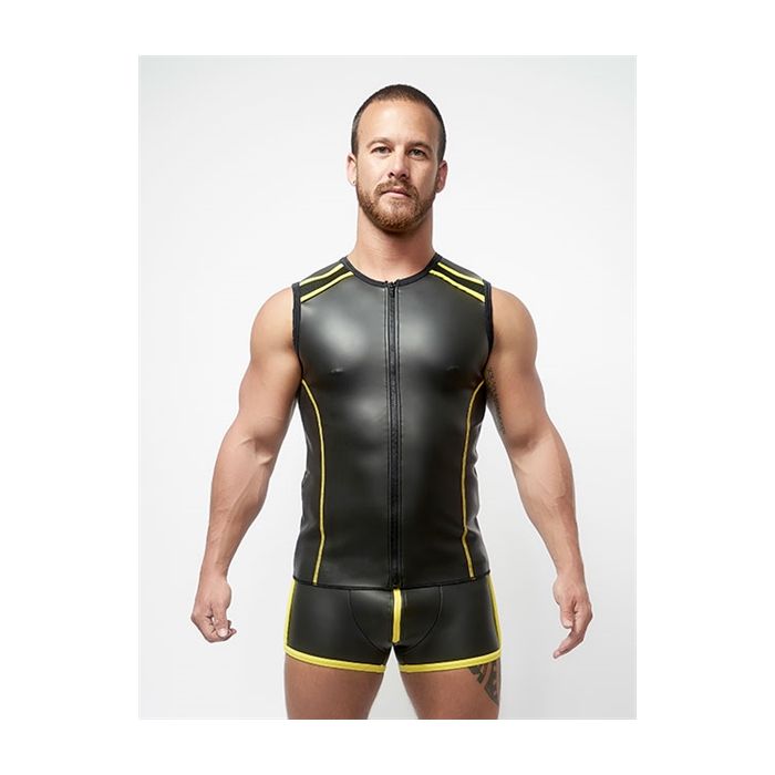 Mister B Neoprene Sleeveless T Zip Zwart Geel