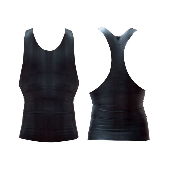 Het mouwloze Mister B Muscle Shirt is gemaakt van 100% rubber en is verkrijgbaar in de maten S, M, L en XL.